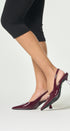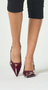 Wine-colored pointed shoe, heel, 5 cm, synthetic leather