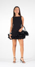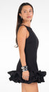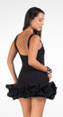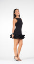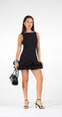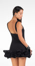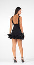 Black dress, straight cut, with two ruffles at the bottom, ideal for a very special occasion or dinner