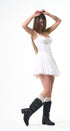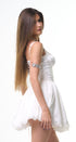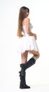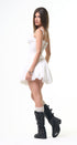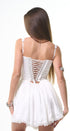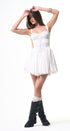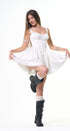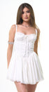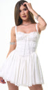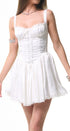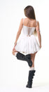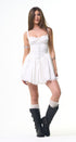 Mini DRESS, blanco, tela de seda, Top, en forma de corset Top,Lace up En la parte de atrás Para un mejor ajuste, según sea la necesidad, falda, volada, encaje en la parte de abajo, con forros en la parte de abajo, tirantes delgados, ideal para un Look moderno, casual, y una ocasión especial.