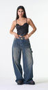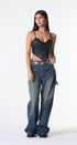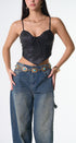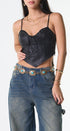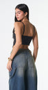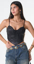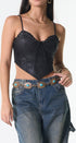 Top, color negro, tela de suede, remaches metálicos, en la parte del frente, ideal para un Look moderno y casual
