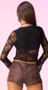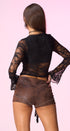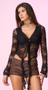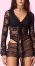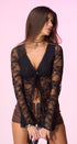 Top, color negro, manga larga, tela de encaje, con forro en el busto para mayor seguridad, abertura al frente, ideal para un Look moderno y casual.
