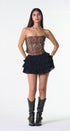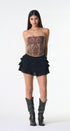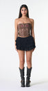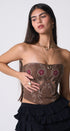 top, estilo, corset, tela de suede Color café, con bordados al frente, laceup la parte de la espalda, ideal para un look moderna y casual
