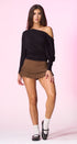 Minifalda con paletones en la parte de abajo, con George, abajo para mayor seguridad, color café, tela de algodón, zipper por la parte de atrás, ideal para un Look moderno y casual.