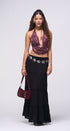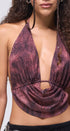 top, color café, amarre en el cuello, al frente, caída de Hamaca, al frente, espalda, totalmente abierta, tela de poliéster, corte a la cintura, ideal para un Look moderno y casual