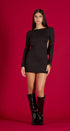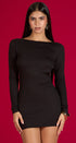 Mini DRESS, color negro, tela de licra, manga larga, espalda, totalmente abierta, con tiritas en cruz, en la parte de atrás, ideal para un Look moderno, y casualidad una vocación especial