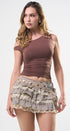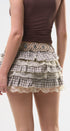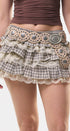 Falda de cuadritos café, con beige, con encaje en la parte de abajo de los vuelos, con Short, por debajo para una mejor comodidad, ideal para un Look moderno y casual