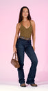 Dark blue denim JEANS high-waisted and flared, ideal for a modern and casual look