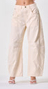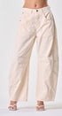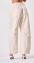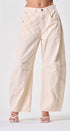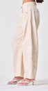 Pantalón color, beige, forma de globo, tela de algodón, ideal para un Look