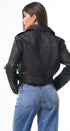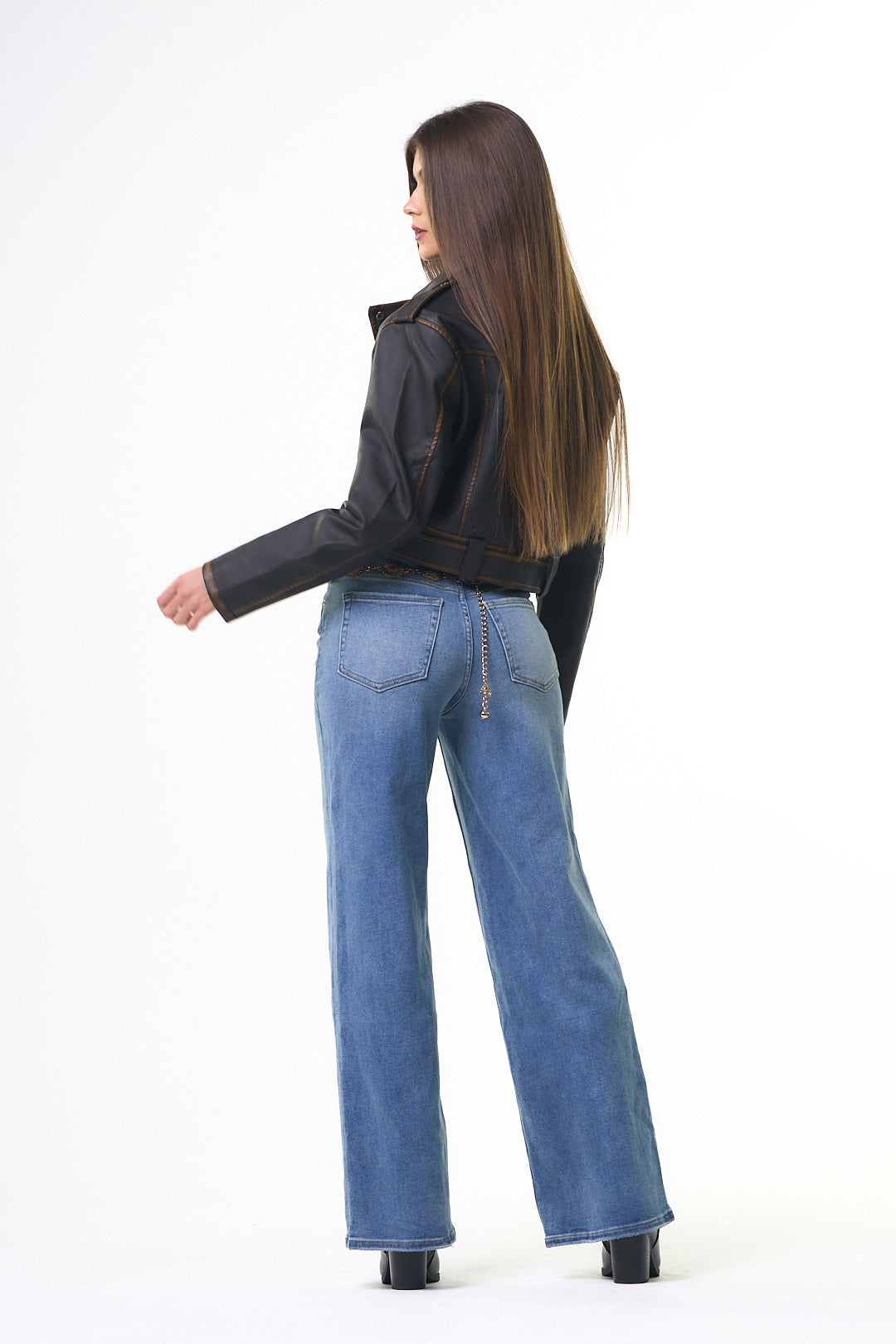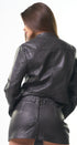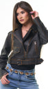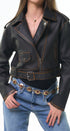 Jacket de cuero, sintético, color café, broches al frente y faja ajustable con hebilla al frente, corte la cintura, ideal para los días de frío.