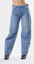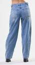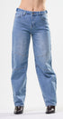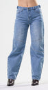 Pantalón de mezclilla, celeste, claro, baggie, posturas al frente, Pierna, ancha, ideal para un Look moderno y casual