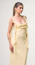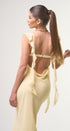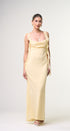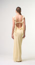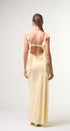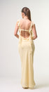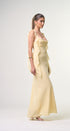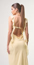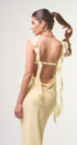 Maxi, Best, color amarillo, con tiritas, guindadas en los hombros, abertura en una pierna, tela 100%, algodón, espalda, abierta, ideal para una vocación especial y un Look moderno y cas