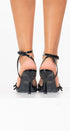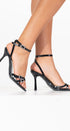 Black heeled sandals with silver detail