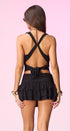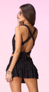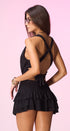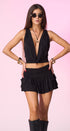 Top, color negro, cuello de Hamaca, profundo, espalda, abierta y tiritas, cruzadas en la espalda, corte a la cintura, tela de poliéster, ideal para un Look moderno y casual.