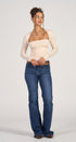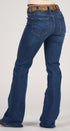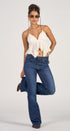 Dark blue denim JEANS, high waist, and flared, ideal for a modern and casual look