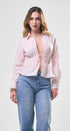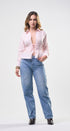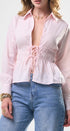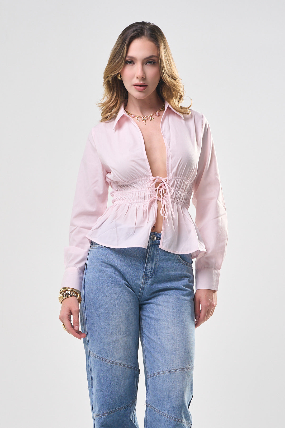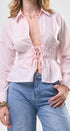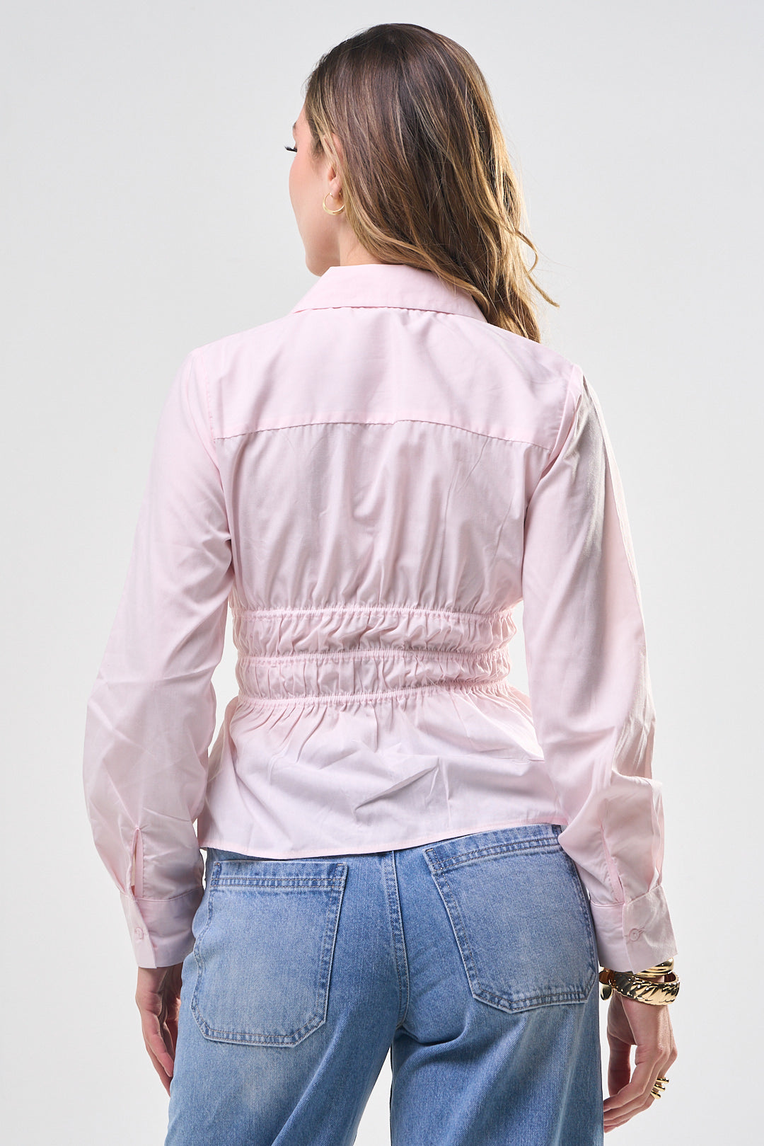 Top, color rosado, tela de algodón, manga, larga, camisera, cuello y botones al frente, elástico en la cintura, corte, las caderas, ideal para un Look moderno y casual