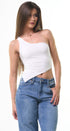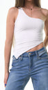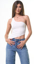 Top, color blanco, ONE, Shoulder, asimétrico, tela de poliéster, tela Stretch, ideal para un Look moderno y casual.
