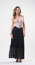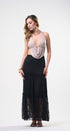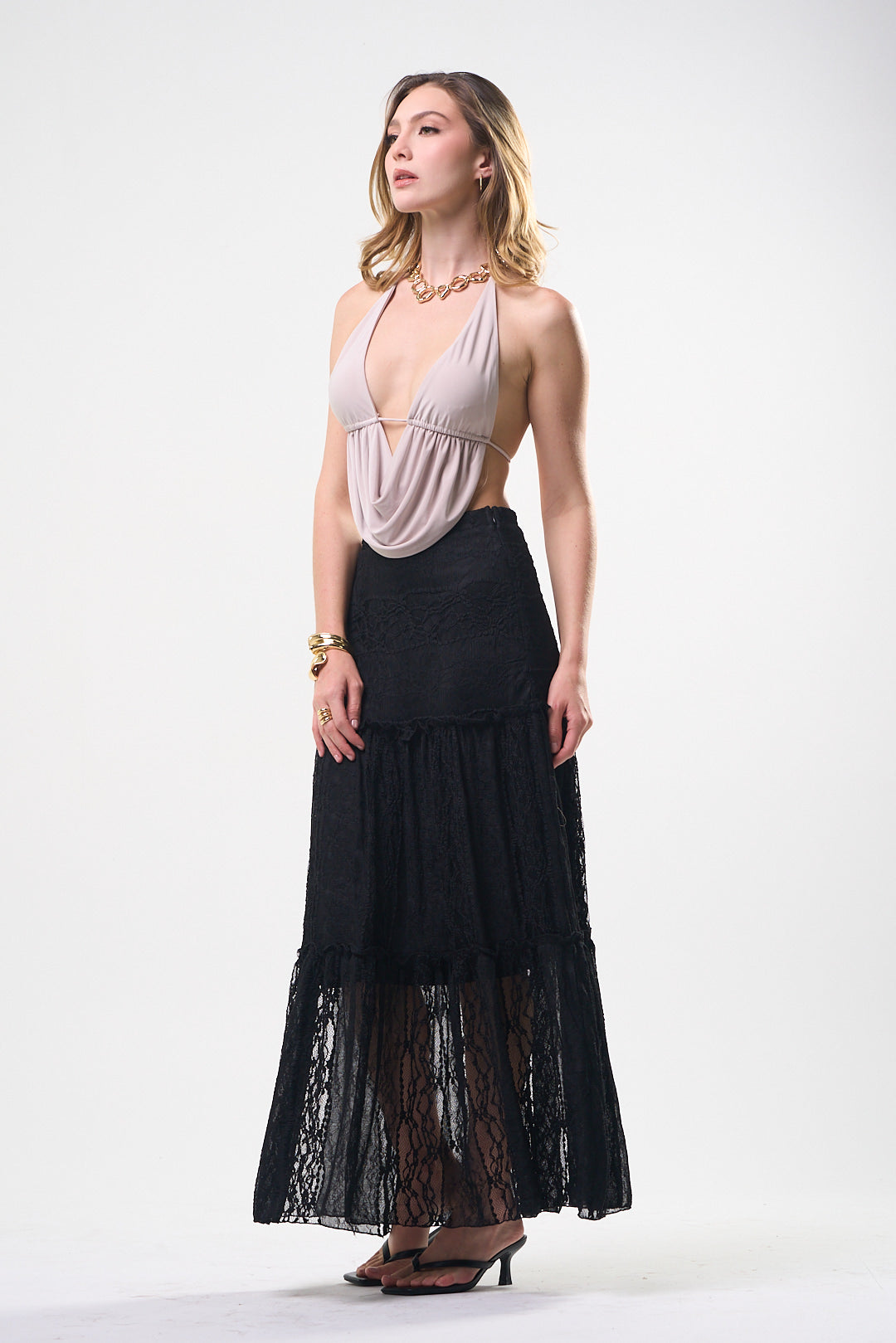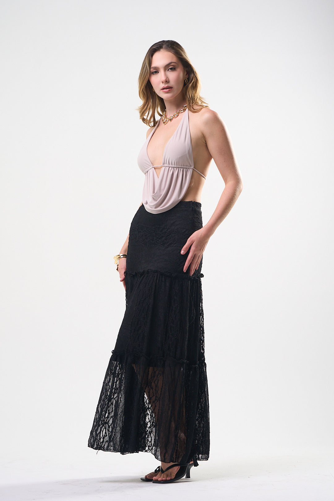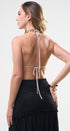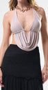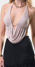 Top color, beige, tela de poliéster, espalda, totalmente abierta, corrugado al frente, amarre al cuello, ideal para un Look moderno y casual