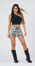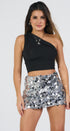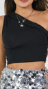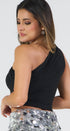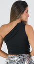 One Shoulder Top in black cotton fabric, cut at the waist, and ideal for a modern and casual look