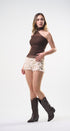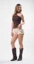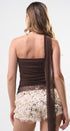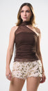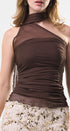 Top, color café, con bufanda, incorporada, corrugado a los lados, conforme en la parte de adentro, tela, De Cr, corte las caderas, ideal para un Look moderno y casual