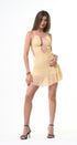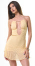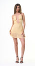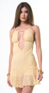 Mini DRESS, color amarillo, tela de encaje, abertura al frente, abertura en espalda, con George en la parte de abajo, para mayor comodidad, ideal para un loco moderno y casual.