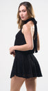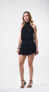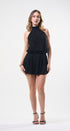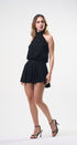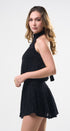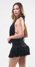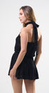 Vestido, color negro, Halter, amarre en el cuello, espalda, totalmente abierta, falda, volada, forro en la parte de abajo, ideal para un Look moderno y casual