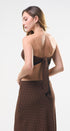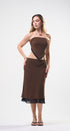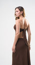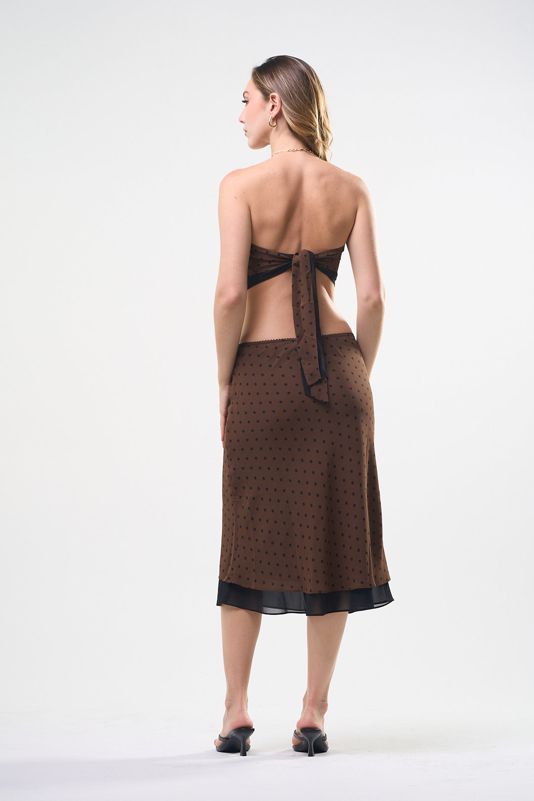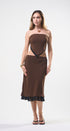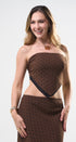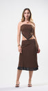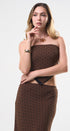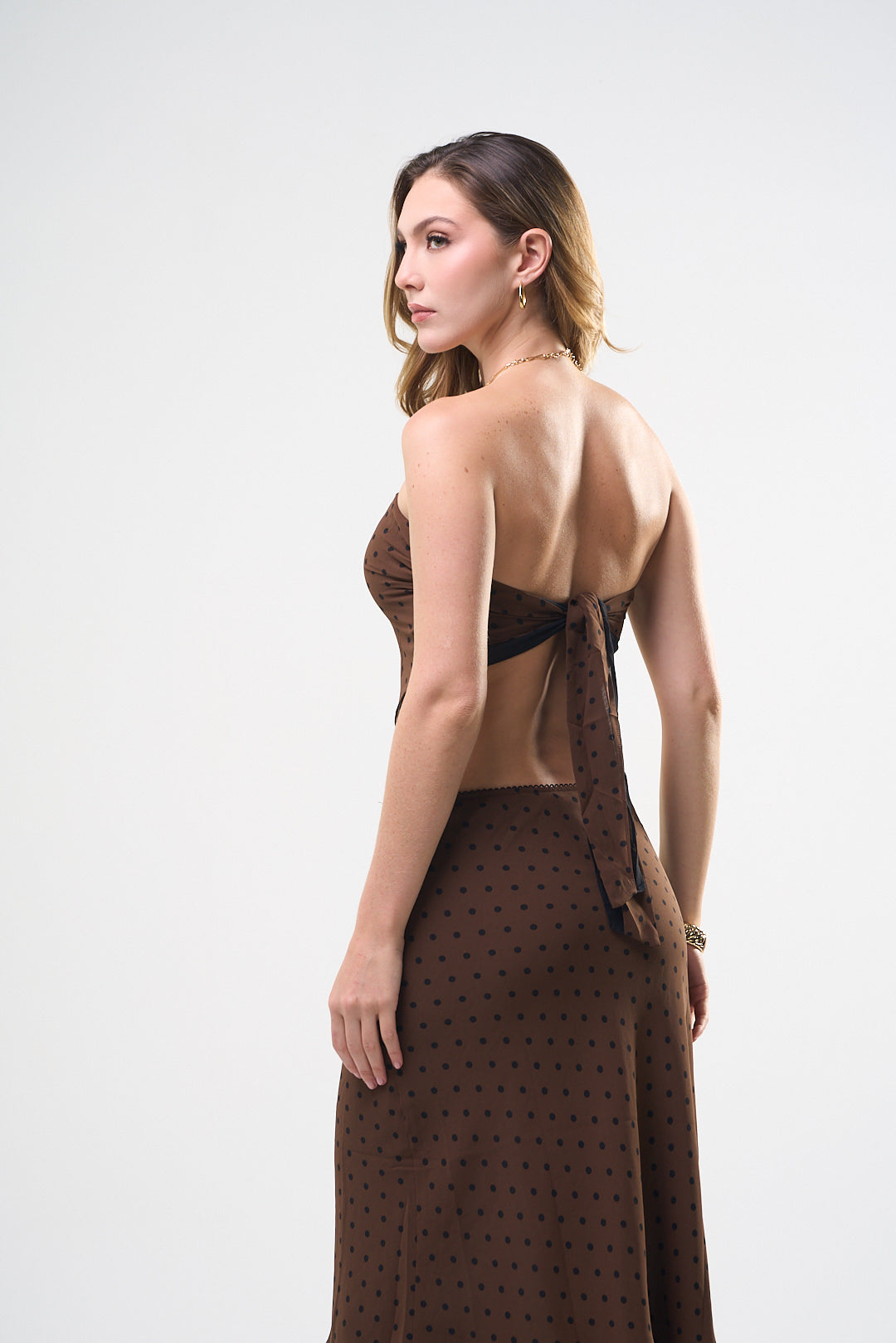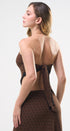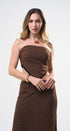 Set de falda y Top, color café, con puntitos negros, Top strapless con amarre en la espalda, falda larga, con elástico en la cintura, ideal para un Look moderno y casual