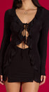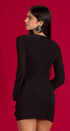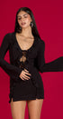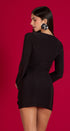 Mini vestido, color negro, con vuelos en el frente, manga larga, mangas, con campana, Tela de poliéster?? strech ideal para una ocasión especial