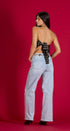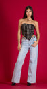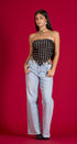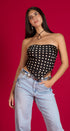 Bandana, Top negro, con puntitos blancos, polkadots, amarre en espalda, tela de satín, ideal para un Look moderno y casual