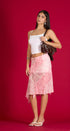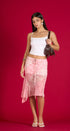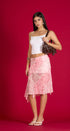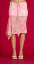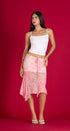 Mido Skirt, rosada con print de flores, asimétricas, de la mesa, con forro abajo, elástico, una cintura, ideal para un Look moderno y casual