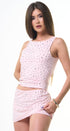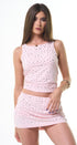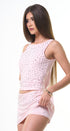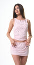 Set color rosado, tela de poliéster, con remachas plateados al frente tela strech.