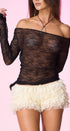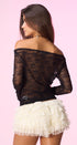 Top, color negro, Off Shoulder, tela de encaje, mangas, largas, corte, las caderas, ideal para un Look moderno y casual.