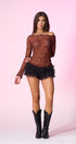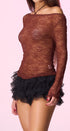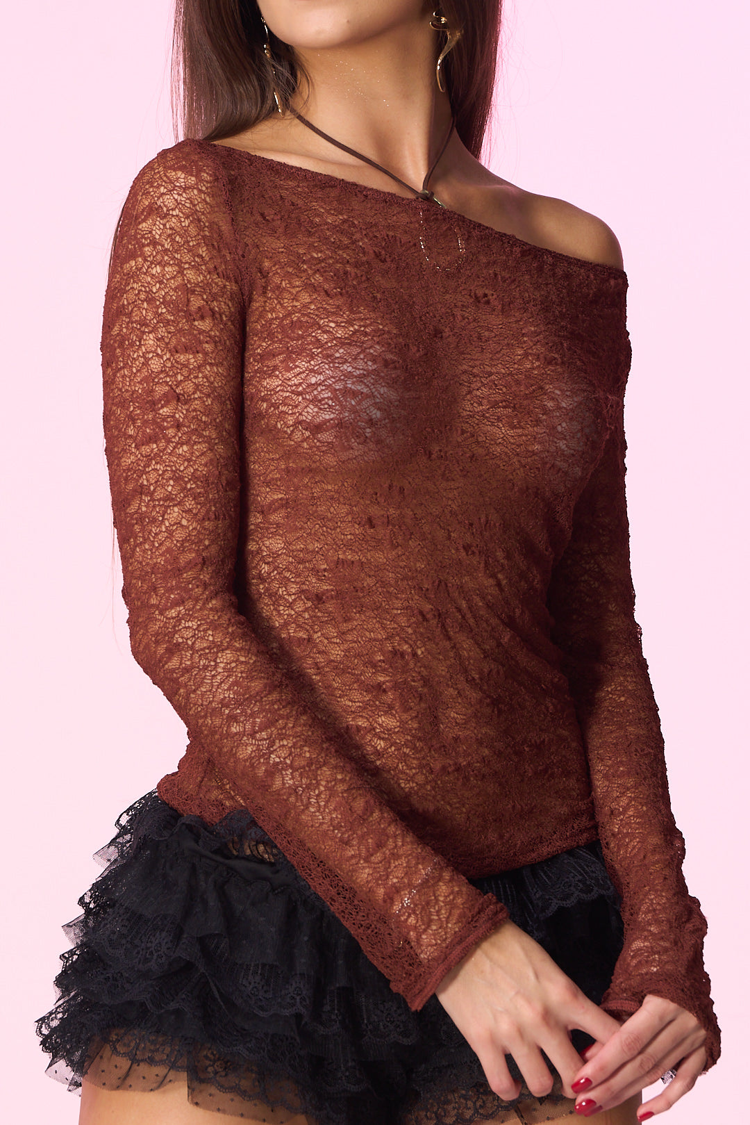 Top Of Shoulders, tela de encaje, color Burgundy, mangas, largas, corte, las caderas, ideal para un Look moderno y casual.