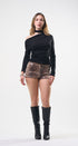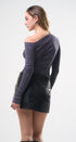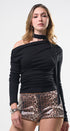 Blusa, color negro, manga larga, tela de poliéster, corte, las caderas, corrugado a los lados, con bufanda para un Look moderno y casual