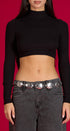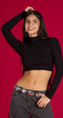 Crop Top, cuello, alto alto manga larga corta a la cintura de la de algodón estrella, ideal para un loco moderno casual
