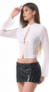 Mini falda, color negro, con lentejuelas, corte bajo, Sara, en la parte de atrás, ideal para un Look moderno y casual.