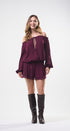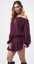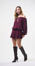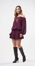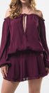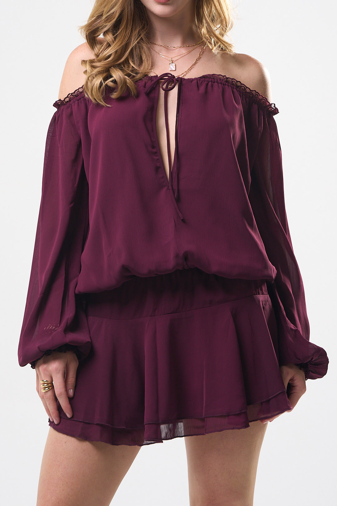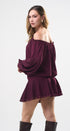 mini DRESS of Shoulder, color Burgundy, tela de poliéster, con forro abajo, corte con vuelos en las caderas, ideal para un Look moderno y casual