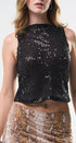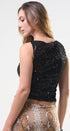 Top, color negro, con lentejuelas, de la mesa, corte las caderas, sin manga, ideal para un Look moderno y casual