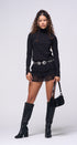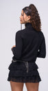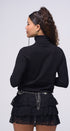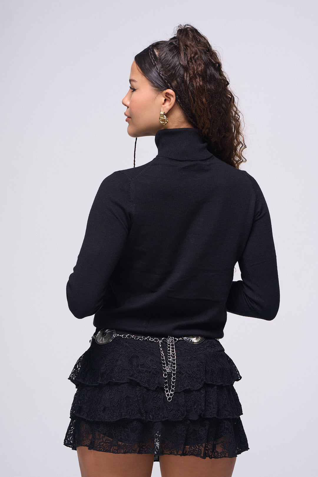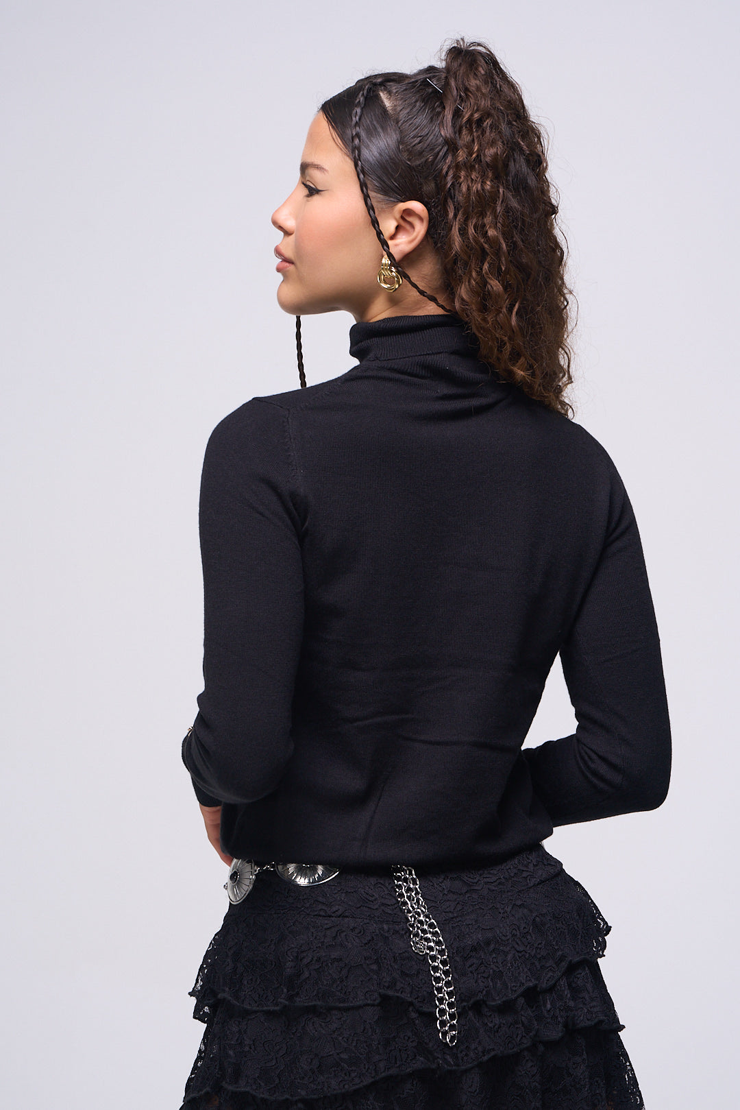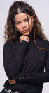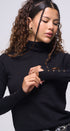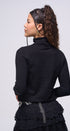 Top, cuello de tortuga, manga larga, con detalles dorados, en la parte de abajo de la manga, tela Stretch, corte las caderas, ideal para los días de frío