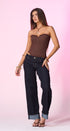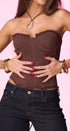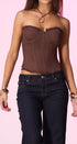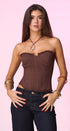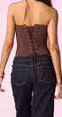 Corset color café, con lace up en la parte de atrás, corte a las caderas, ideal para un Look moderno y casual.