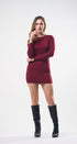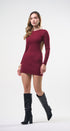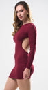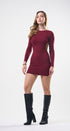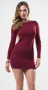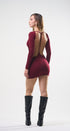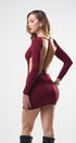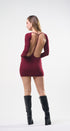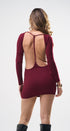 Mini DRESS, color, Burgundy, cuello redondo, manga, larga, espalda, abierta, y con un detalle de tiritas en la espalda, ideal para un Look moderno y casual