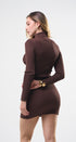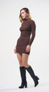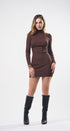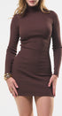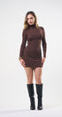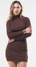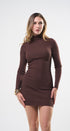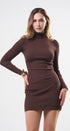 Vestido, cuello de tortuga, color café , Tela de knit , Manga larga, estrés, ideal para un Look moderno y casual