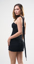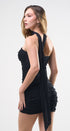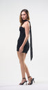 Mini DRESS, color negro, con Abalorio negro, por todo el vestido, tela de poliéster, estrés, con bufanda para un Look moderno, y para una vocación especial