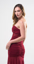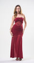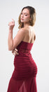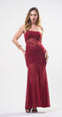 Maxi DRESS, color Burgundy, con transparencias en la cintura, con tela de encaje, forro en la parte de abajo, strapless, ideal para una vocación especial