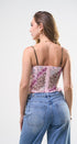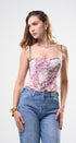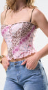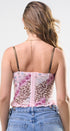 Corset Top con Animal, print, color café y rosado, de tirantes, con zipper en espalda, corte las caderas, con abuelito en las caderas, cierre con zipper en la parte de atrás, ideal para un Look moderno y casual