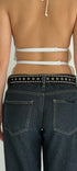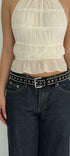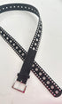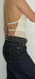 Faja de cuero negra con remaches plateados y hebilla plateada