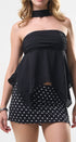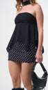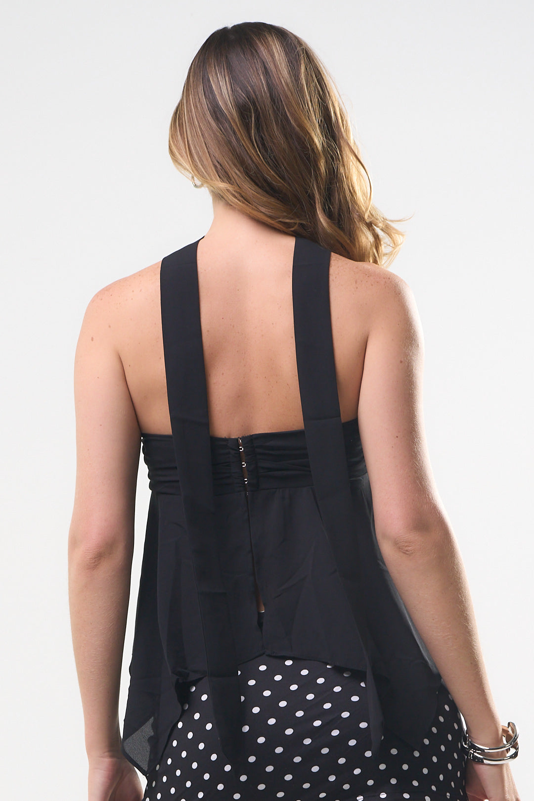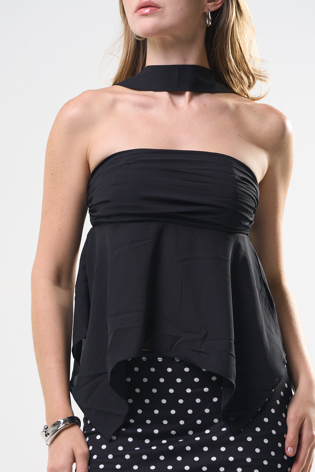 Top, strapless, tela poliéster, corte las caderas, amarre con botones en la parte de atrás, con bufanda para un Look moderno y casual