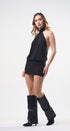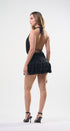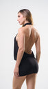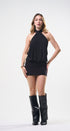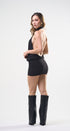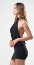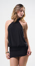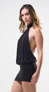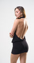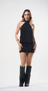 Mini DRESS, Halter, corte a las caderas, espalda, totalmente abierta, cierre con botones en el cuello, ideal para un Look moderno y casual