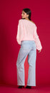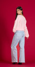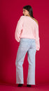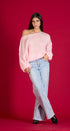 Suéter rosado, asimétrico, tela de knit Ideal para los días de frío, y para un Look moderno y casual