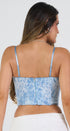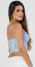 Corset Top color celeste y blanco , Tela de encaje, cierre al frente, de tirantes, ideal para un Look moderno y casual