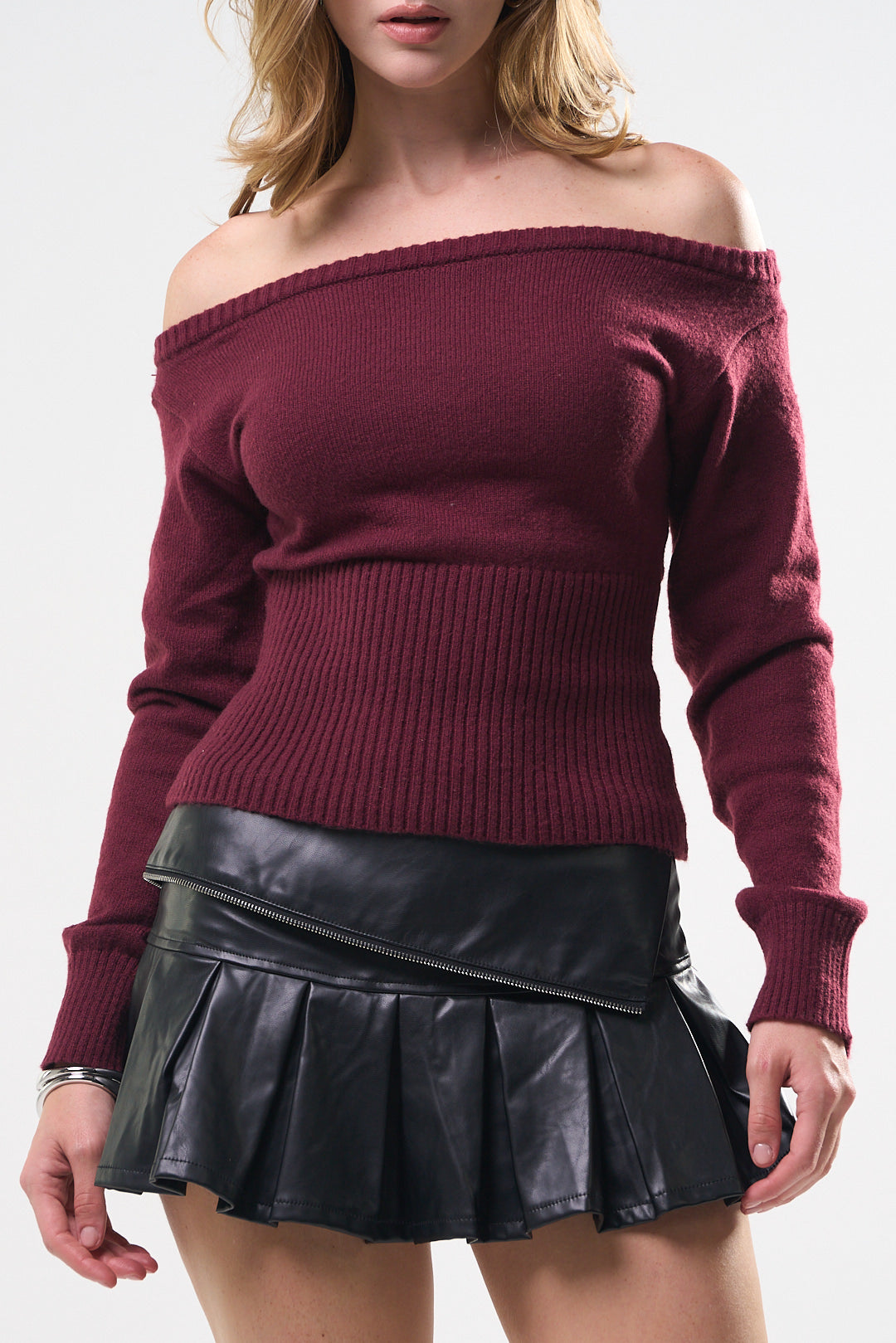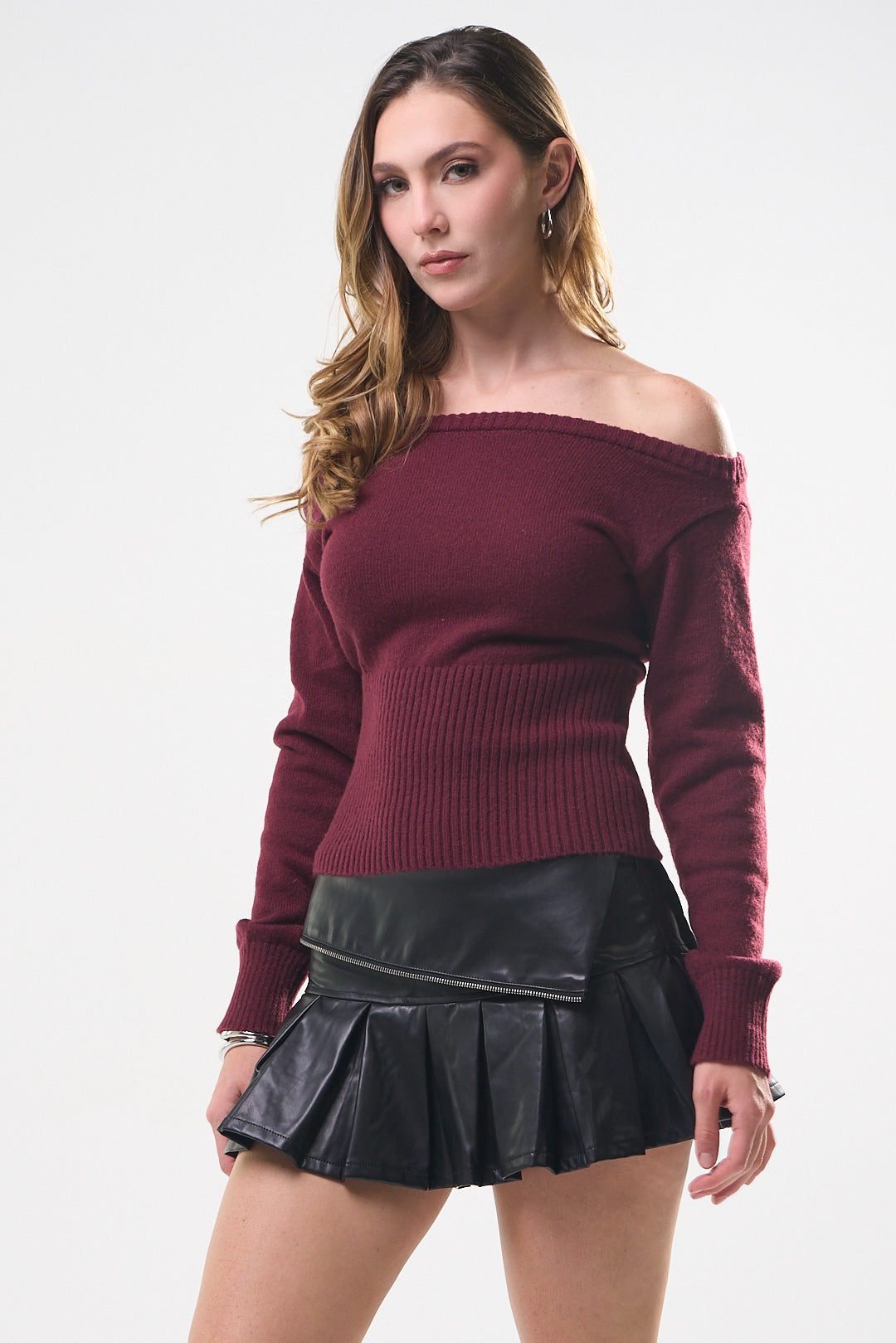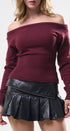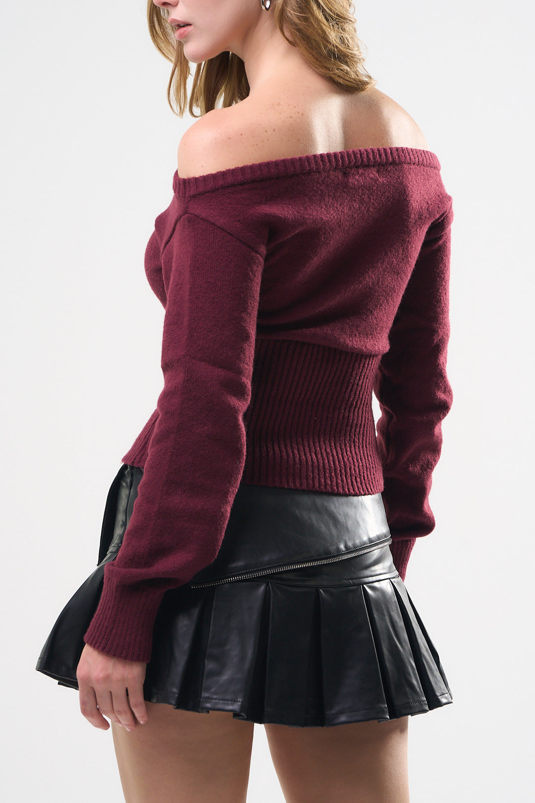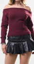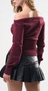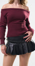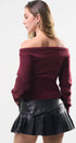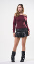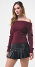 Suéter Top, color Burgundy, tela de knit, Manga larga, cuello de ojal, en talle en la cintura, ideal para un Lux moderno y casual, y para los días de frío